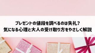 プレゼントをもらったとき、ふと「これ、いくらくらいなんだろう」と気になってしまった経験はありませんか。お返しを考えるときや、相手との距離感を測りたいときほど、値段が頭をよぎりやすいものです。でも同時に「調べたら失礼かも」「感じ悪い人だと思わ...