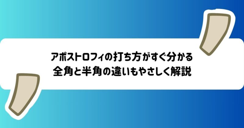 アポストロフィの打ち方が分からなくて、手が止まってしまったことはありませんか。