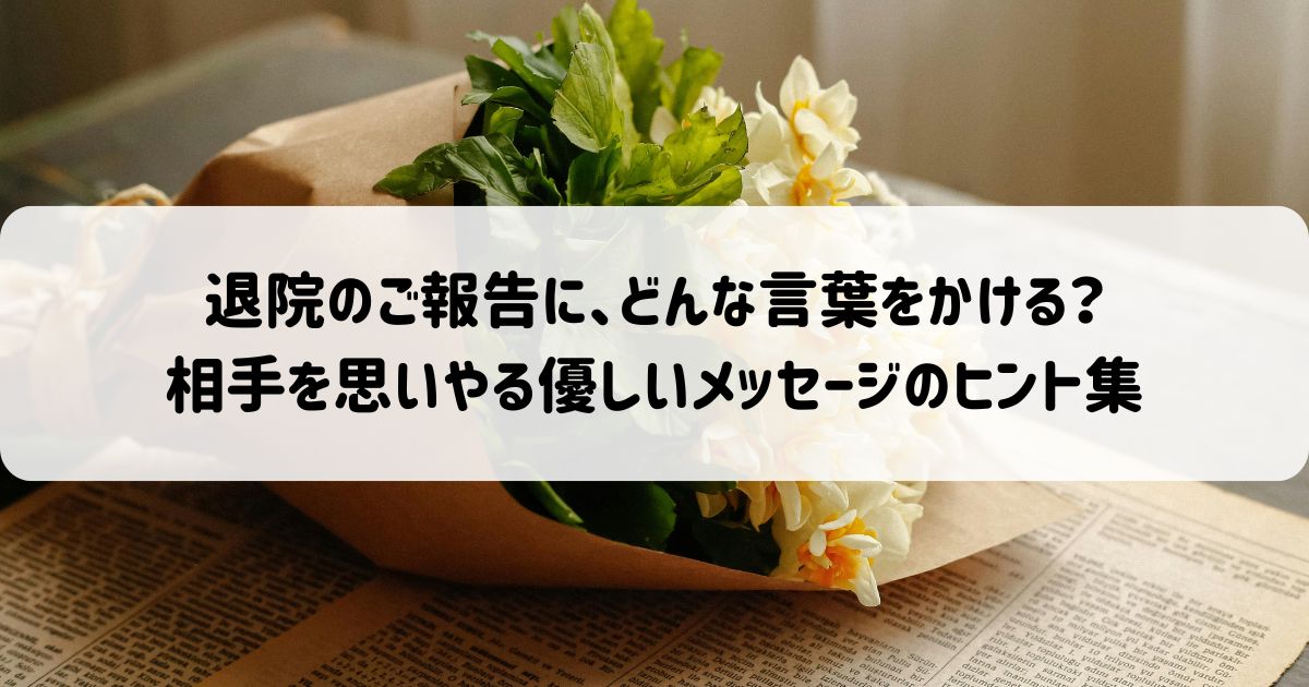 たとえば:、「退院されたと伺い、安心しました。これまで本当にお疲れさまでした。どうかご自身をいたわりながら、少しずつ穏やかな日常を取り戻していけますように。」