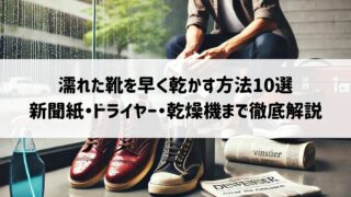 生活 濡れた靴を早く乾かす方法10選|新聞紙・ドライヤー・乾燥機まで徹底解説 突然の雨や水たまりで靴がびしょ濡れ…そんな経験、誰しもありますよね。濡れた靴を放置すると臭いやカビの原因になり、大切な靴を傷めてしまいます。でも正しい方法を知っていれば、短時間でしっかり乾かすことができ、靴の寿命を延ばすことにもつながります... 生活